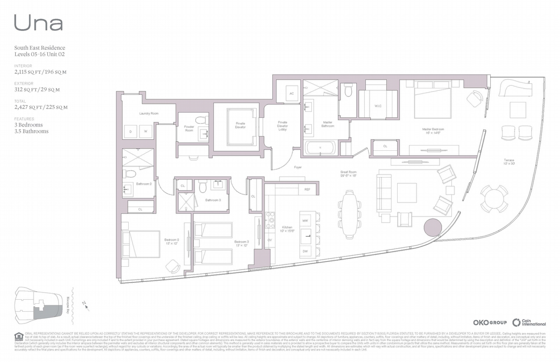 • Two penthouses, each with a private pool and 11'7" to 12'4" ceilings
