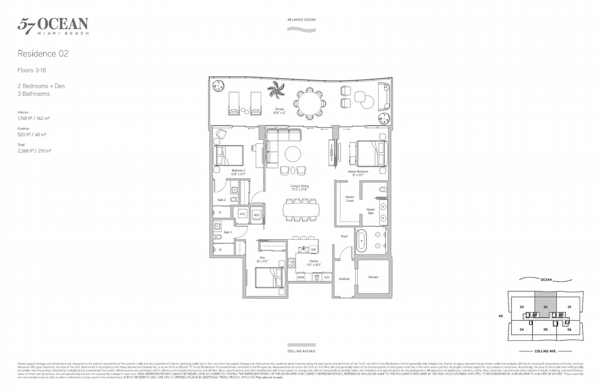 Inspired by the celebratory character of the Brazilian lifestyle, 57 Ocean brings Tropical Modernism to Miami Beach. Designed by world-renowned architectural firm Arquitectonica, the undulating wood-and-glass structure, embraced by lush foliage, blends harmoniously with its surroundings on the Millionaire’s Row section of Collins Avenue. Its prime location provides easy access to the very best of Miami, from the Design District and Downtown to Biscayne Bay and the building’s 220 linear feet of beach. Each of the 81 residences are graced with private elevator entries, streamlined Poliform kitchens, comfortable bedrooms and deep wood-lined terraces— true extensions of the home—whose glass balustrades frame the city or the sea. Conceived as one comprehensive suite delivered in many parts, 57 Ocean’s amenities are singularly special yet intuitively connected to one another. The Wellness Pavilion is a holistic retreat featuring private indoor and outdoor treatment rooms, a vitality pool, relaxation and meditation areas; a thermal suite incorporates heating and cooling elements including aromatherapy saunas, men’s and women’s steam rooms and an ice fountain. Beyond the spa, residents can further pursue their wellness goals in any way they choose, from sunrise yoga on the beach, to relaxing by the infinity pool, exercising on the third-floor sunset deck, or entertaining friends and family in the state-of- the-art Chef's Kitchen. This is a one-of-a-kind residence centered around multi-dimensional wellness, with an unparalleled connection to nature. 57 Ocean elevates mindful living in Miami Beach.